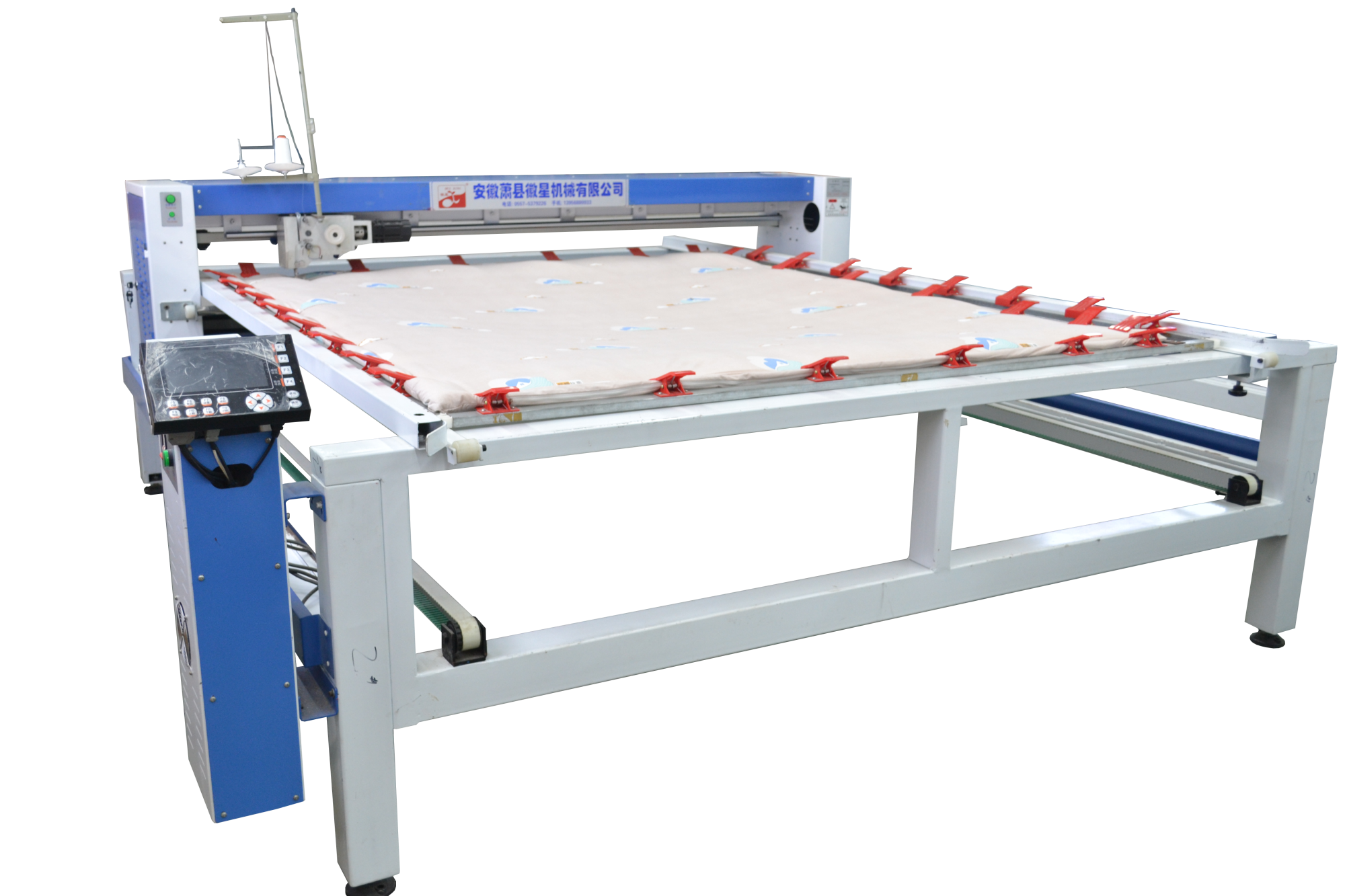 產(chǎn)品簡介:1.移動線路全部采用拖鏈裝置,設備整潔。 2.斷線檢查,面線段線自動停機,工作燈,穿線更方便。 3.四條同步皮短傳動,絎縫精度高。 4.高一規(guī)格和厚度的炫彩,確保了設備運行的穩(wěn)定和吃厚度。 5.采用三相混合式步進電機,噪音接近無聲。 6.液晶顯示器,小控制柜,占地小(可選超小型控制柜) 7.配備新一代絎縫機專用電腦,穩(wěn)定可靠,性能優(yōu)良。 8.全新控制系統(tǒng),內(nèi)部實時檢測,確保不拉壞被子。 9.LED高亮度工作燈,夜間作業(yè)穿線更加安全方便。 10.電腦、電機出現(xiàn)故障自動停機,同時電腦畫面顯示故障內(nèi)容。 11.電腦采用DST花樣打板系統(tǒng),自帶幾百常用花型。"