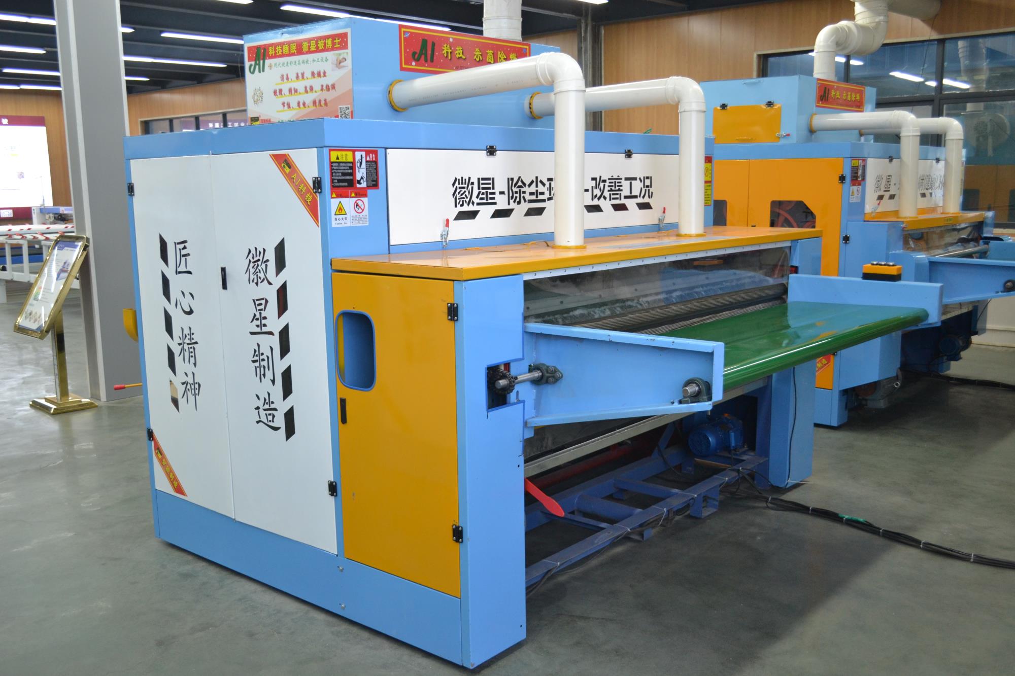 產(chǎn)品簡介:彈花梳理一體機(jī)高配款,可對棉被寬度自由調(diào)節(jié),為對用戶的生產(chǎn)帶來了方便,大功率排風(fēng)機(jī),高效的吸除落棉、飛花和粉塵的裝置改善了勞動環(huán)境減少了紗疵該機(jī)排雜性能良好。彈花梳理一體機(jī)高配款已向優(yōu)質(zhì)、高產(chǎn)、低耗的方向發(fā)展,機(jī)流程簡單易學(xué),分體控制柜,按鍵一鍵啟動,雙側(cè)羅拉采用全封閉設(shè)計(jì),防纏繞,不塞棉,不藏灰,低噪音,錫林工作輥采用上市公司原材,該機(jī)可隔機(jī)安全觀察,開松四羅拉不抽花,雙雜亂。它配有雙吸塵系統(tǒng),除去棉花中的粉塵以及短絨,同時(shí)改善了工作環(huán)境。該機(jī)可對各種纖維、棉花、羊毛、駝絨、等原料開松梳理,是生產(chǎn)棉被、羊絨被、絲綿被的機(jī)械。